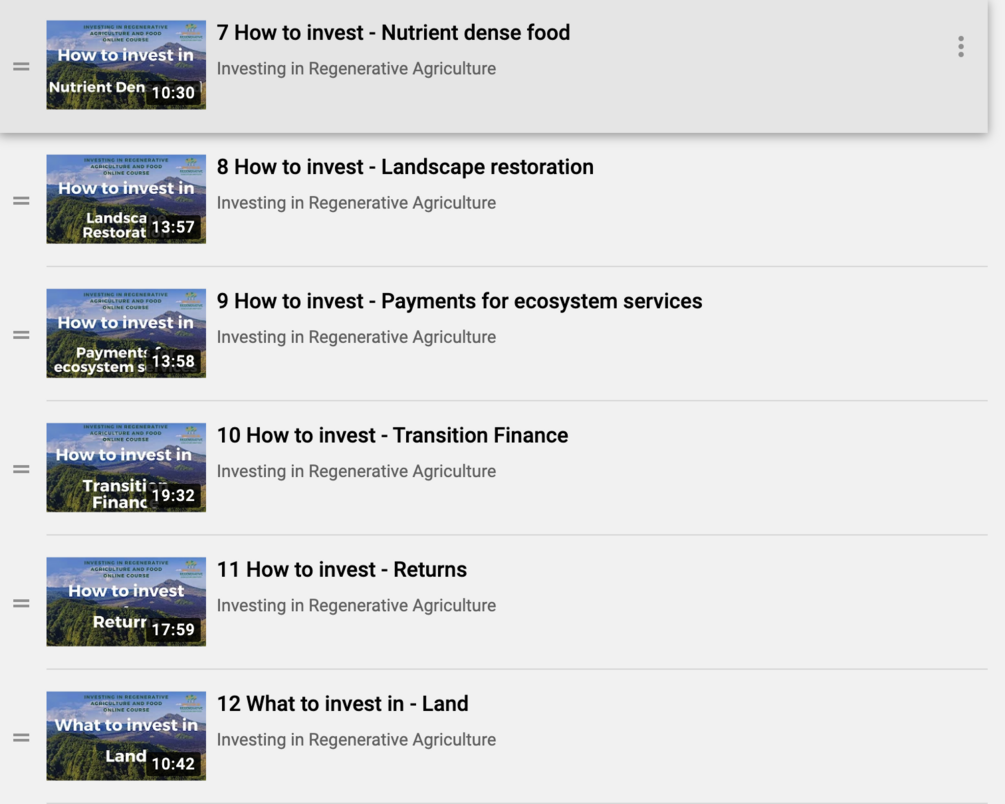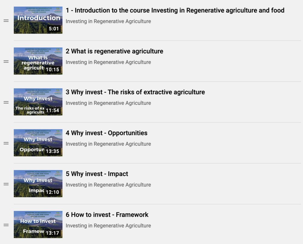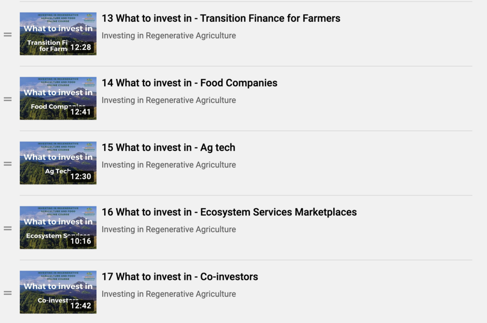 A series of currently 17 short videos (10-15min) plus downloadable pdf slides with our lessons learned after recording over 100+ interviews with investors, fund managers, farmers, scientists since 2016, always asking the question: